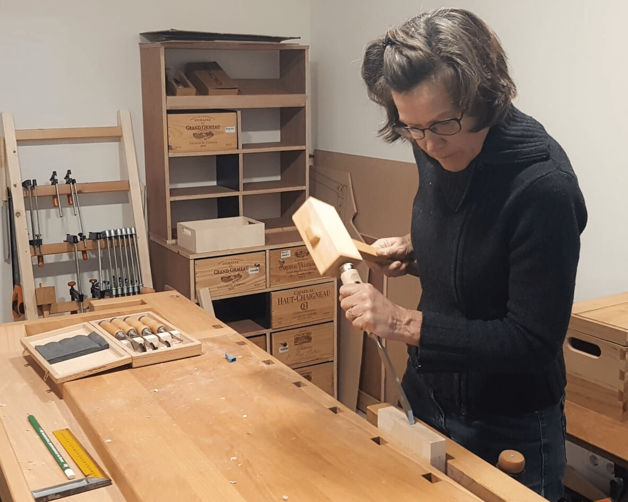 Na een opleiding bij De Schrijn, waar ze de basis van houtbewerking leerde, richtte ze in het voorjaar van 2023 officieel haar meubelmakerij op. En sinds januari 2024 is ze fulltime ondernemer: “Ik werk vooral met traditionele gereedschappen als Japanse zagen en beitels. Als ik grotere machines nodig heb, ga ik naar de Coöperatieve Afdeling Houtbewerking. Dit is een collectieve werkplaats waar ik niet alleen toegang heb tot professionele apparatuur, maar ook kan sparren met andere meubelmakers.”